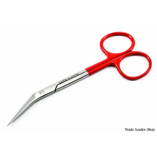 מספריים חדות אדום NATRA גרמניה ראש זווית Iris Scissors angled surgical Dental surgery Micro serrated shears 12 cm