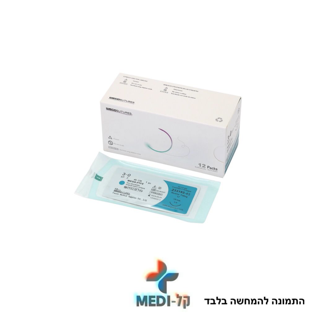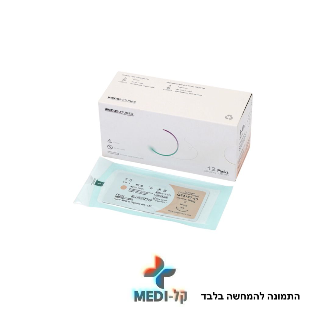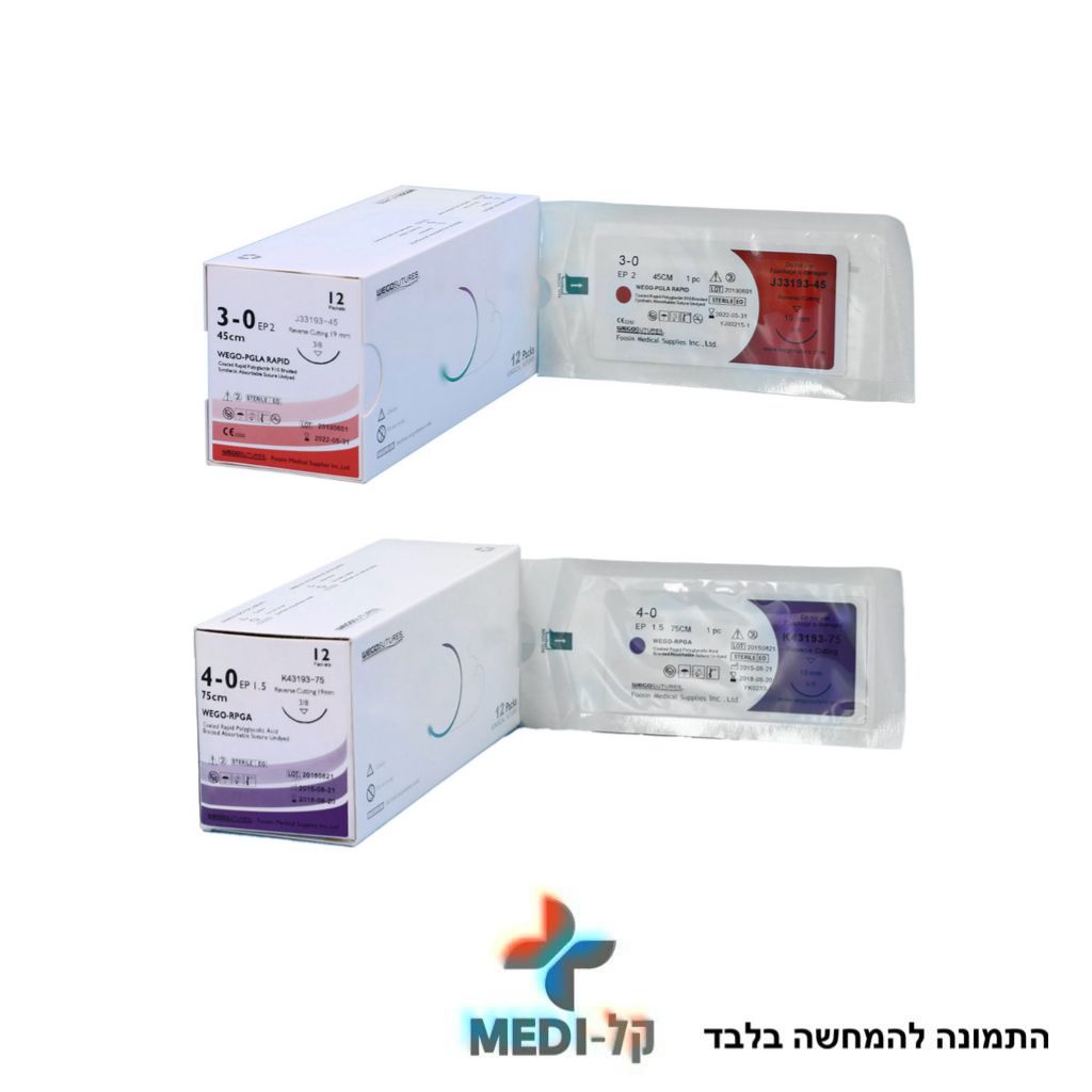 חוט תפירה נספג PGA/PGLA סינטטי, שזור, בצבע סגול/לבן אורך 75 ס"מ RC עקומת המחט 3/8