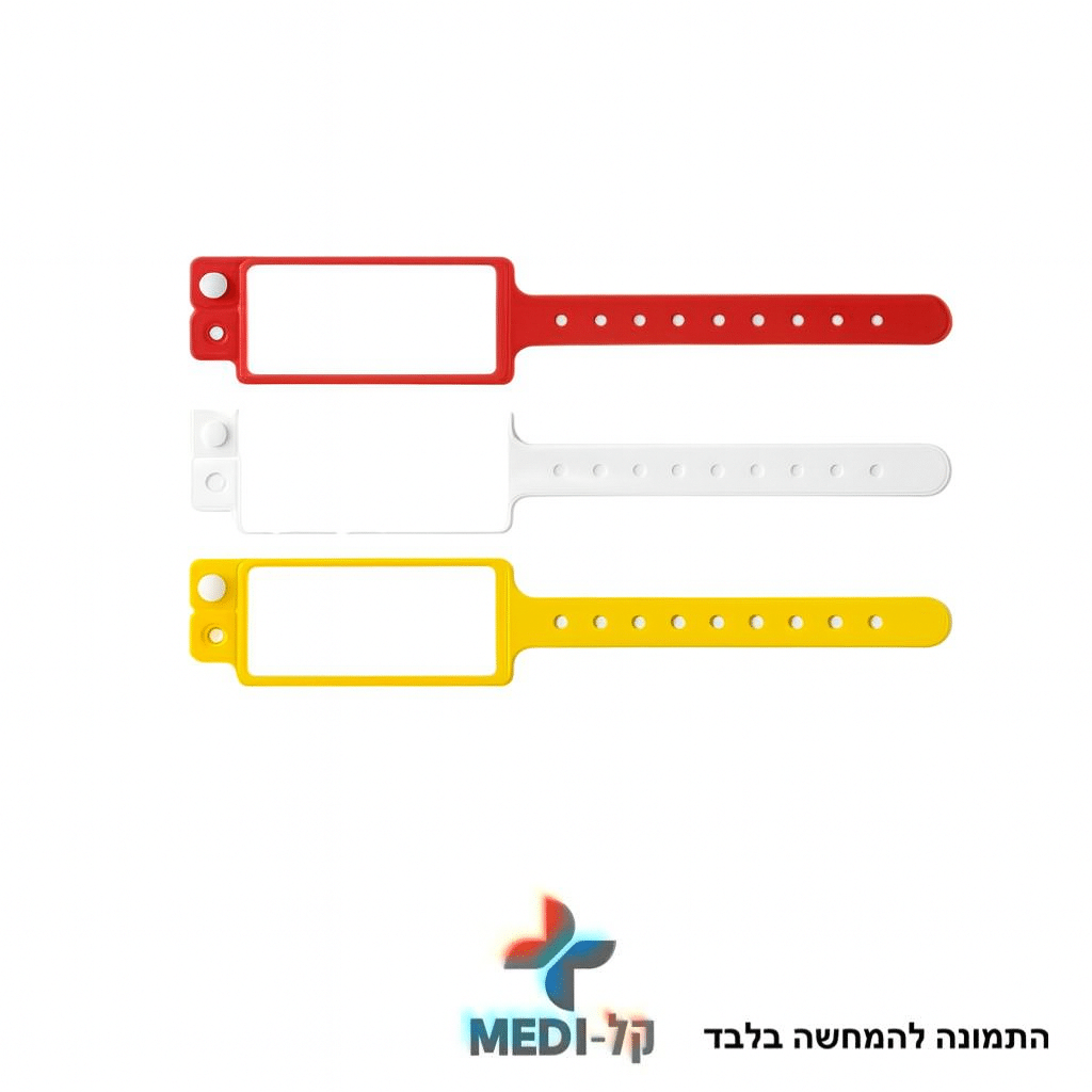 המוצר זמין בשלושה צבעים עיקריים: צהוב, לבן ואדום. כמו כן, כל צבע נועד לשמש לסיווג שונה – לדוגמה, צהוב עשוי לסמן אזהרת אלרגיה, לבן מצביע על מטופל כללי וכחול מסמן קטגוריה מחלקתית ייחודית. יתר על כן, הצמידים מיוצרים מחומר פלסטי איכותי, עמיד במים והיפואלרגני, מה שמבטיח שימוש נוח ובטוח גם לתקופות ממושכות.