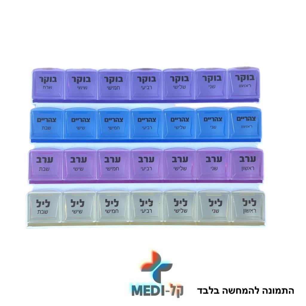 חלוקה: 7 קופסאות יומיות × 4 תאים ביום